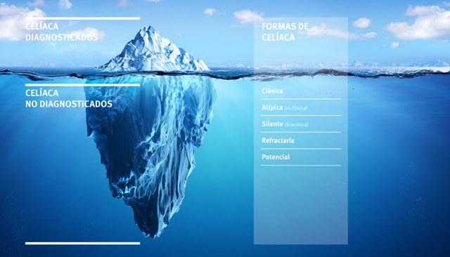 Continúa siendo de difícil y costoso diagnóstico debido, en gran medida, al carácter sistémico de la EC, a la falta de especificidad de sus manifestaciones clínicas y a la existencia de formas asintomáticas. Por ello, siempre que se trata este contexto se habla del “iceberg de la enfermedad celíaca”, puesto que hay muchos casos que no están detectados y sólo se ve la punta del iceberg. El lapso de tiempo entre la aparición de los primeros síntomas y el diagnóstico de la enfermedad celíaca puede ser de hasta siete años.